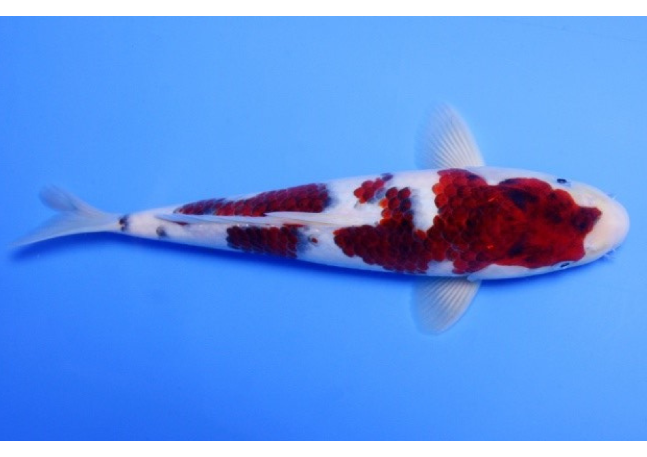 A goromo koi is considered beautiful when it has a uniform and clear color on the whole body, the background skin color must be snow-white or milky white The pattern on the body of the fish needs to be evenly distributed, not concentrated too much in a certain area. A Gomoro with a clean and unblemished head will be even more popular. In addition, the fish needs to be in good shape, plump and healthy.